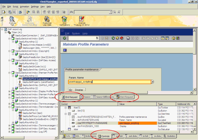 各 SapGuiSetActiveWindow ノードの下には、API 呼び出しを反映しない仮想ノードがあります。 これらのノードは SapGuiRoundtrip と呼ばれ、1 回のラウンドトリップでサーバーに送信された API 呼び出しがすべて含まれます。 SapGuiRoundtrip ノードの最後の API 呼び出しのみがラウンドトリップを強制実行します。 また、この API 呼び出しは、プロファイル設定で呼び出しの最後のパラメータとして指定されたタイマ名で選択された測定値を生成します。