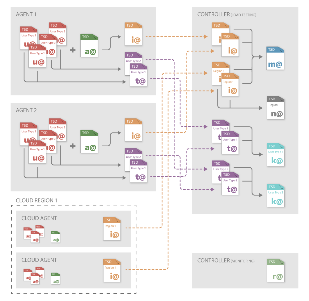 中間ファイル i@<...>.tsd 中間ファイルには、1 つのエージェントから得られたすべての時系列データ (そのエージェントで動作しているすべての仮想ユーザーから得られた時系列データを含む) が含まれています。負荷テストが完了すると、エージェント上で、ユーザー ファイルとエージェント ファイルがマージされて中間ファイルが生成されます。マージされると、中間ファイルはコントローラに転送されます。