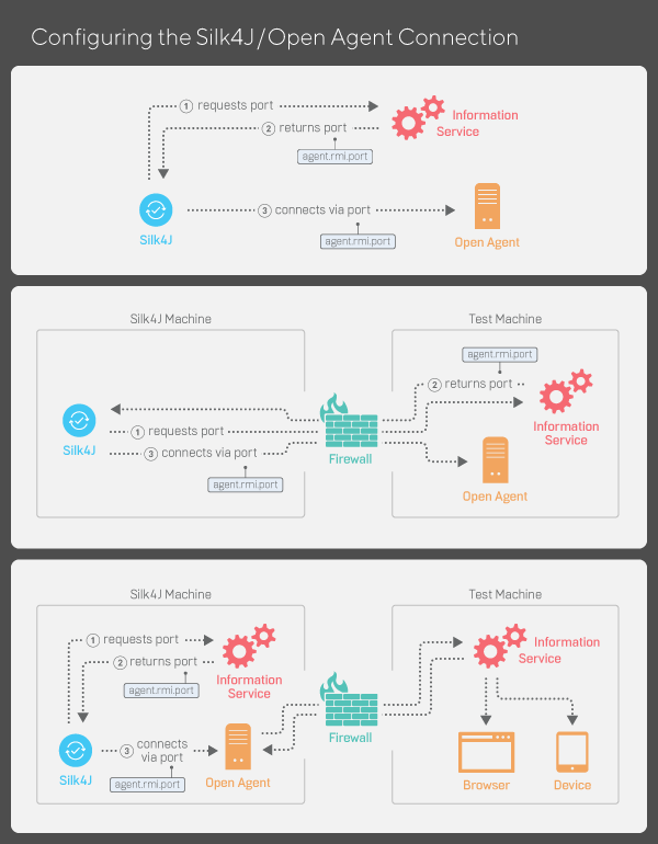 次の図に、Silk4NET、Information Service、Open Agent 間での通信を示します。