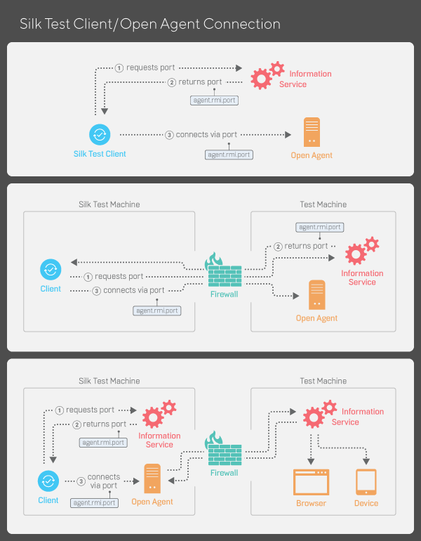 When the Open Agent starts, a random available port is assigned to Silk4J and to the application that you are testing. The port numbers are registered on the Silk Test information service (information service).