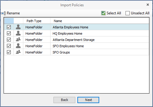Verify that the check box for each policy you want to import is selected.