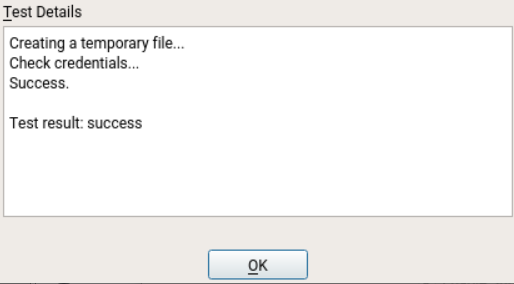 Click Test to check the credentials. YaST will try to download a list of available repositories with the provided credentials. If the test succeeds, the last line of the test results will read Test result: success. If the test fails, check the provided credentials and try again.