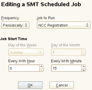 Choose the Frequency of the new scheduled SMT job. Jobs can be performed Daily, Weekly, Monthly, or Periodically (every n-th hour or every m-th minute).