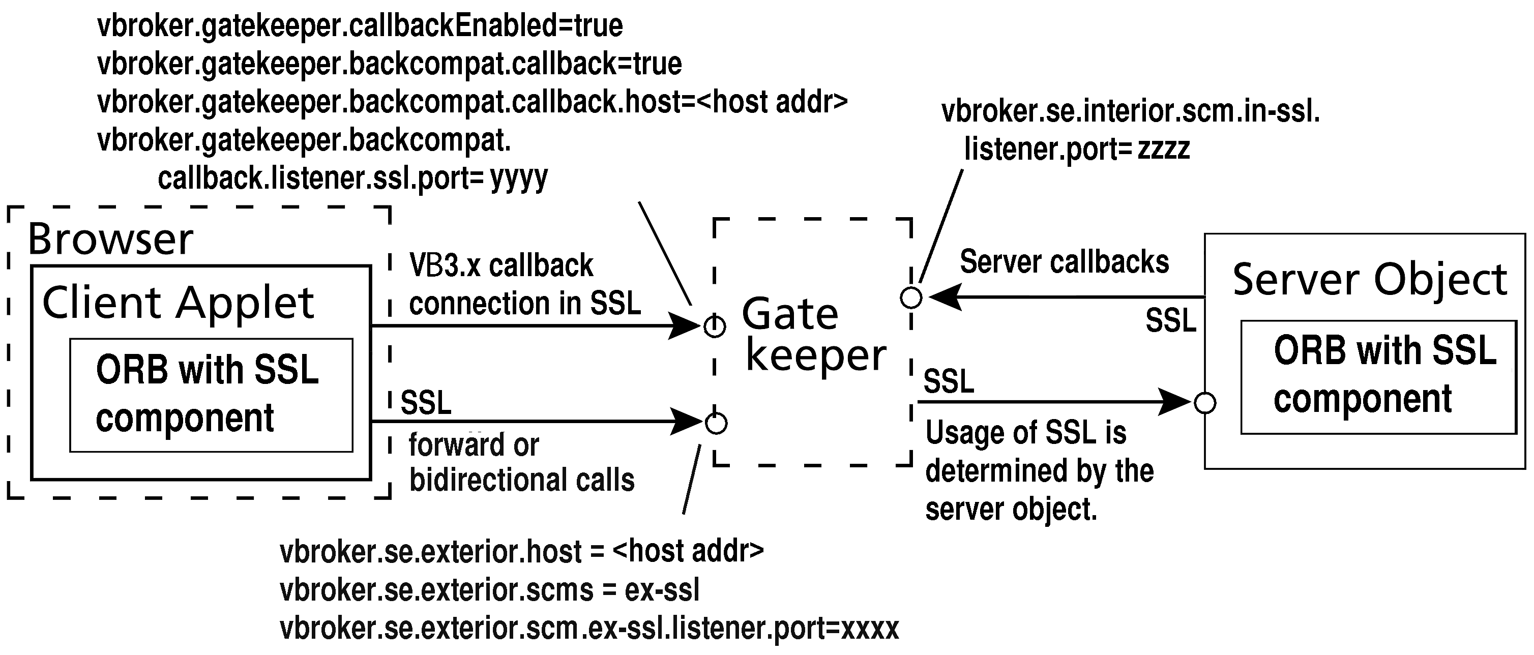 vbroker.se.<xxx>.scm.<yyy>.manager.connectionMaxIdleFor more information about SSL, refer to the VisiBroker Security Guide. Additional properties for setting SSL can also be found in “Appendix GateKeeper properties”.