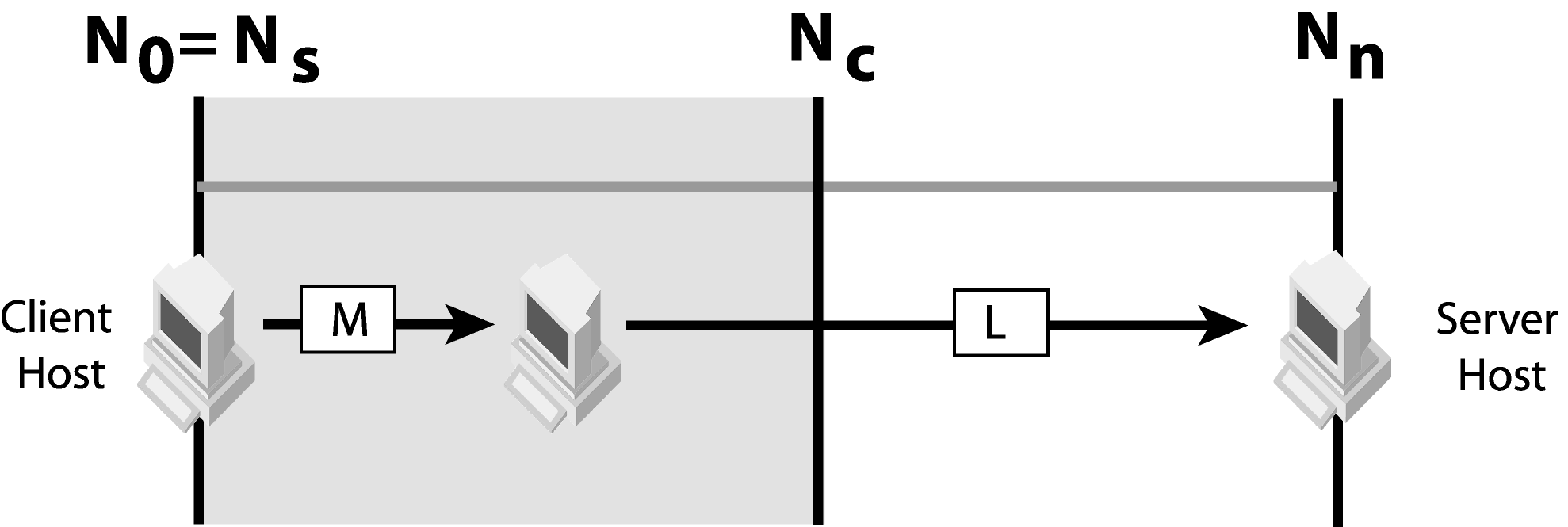 For illustration purposes, the client network will be numbered as N0. The network adjacent to the client network will be numbered as N