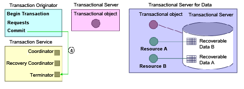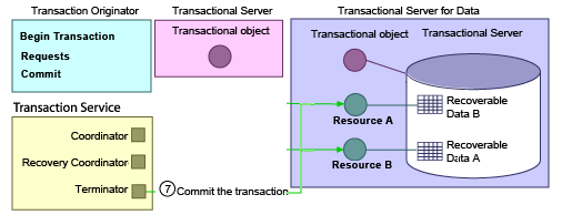 • If the decision to commit the transaction has been logged, the Terminator invokes commit() on all Resources, and the two-phase commit process is finished.