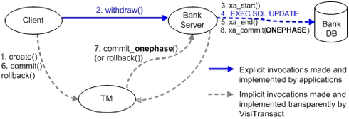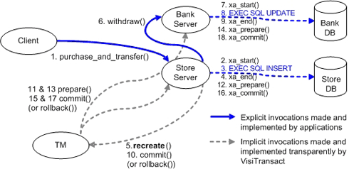 • An additional <xa-resource-alias> element is defined with the name account-storage and points to the oracle <xa-resource> defined previously. Whenever a PMT <transaction> element is defined with the <xa-resource> name account-storage, the referenced oracle xa-resource is used.If set to false, all VisiTransact PMT functions and optimizations are enabled. If set to true, PMT enhancements and optimizations are disabled, and the following deprecated features are enabled:Specifies the XA-resource configuration file using this property. The default value is itsxadesc.xml.The two-phase commit mechanism ensures that all nodes either commit or perform a rollback together. During the course of two-phase commit, if a failure occurs because of a network problem, database crash, or an unhandled software error, the transaction becomes in doubt and the resources in the database are locked and are not freed. To solve this problem VisiTransact comes with an RM recovery utility rmrecover (rmrecover.exe on Windows), along with automatic TM recovery.