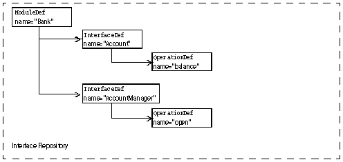 As an example of the kinds of objects an IR can contain, consider that IDL files can contain IDL module definitions, and modules can contain interface definitions, and interfaces can contain operation (method) definitions. Correspondingly, an Interface Repository can contain ModuleDef objects which can contain