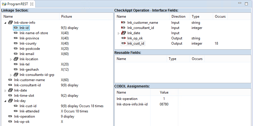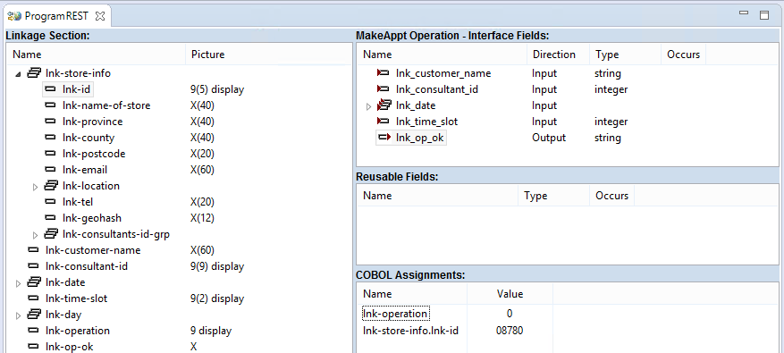 - Because the MakeAppt operation executes only one program function, the value required to initialize that function remains constant. In this case, you create a COBOL Assignment field rather than an interface field, and assign it the value required by the program to ensure the execution of the specific function.