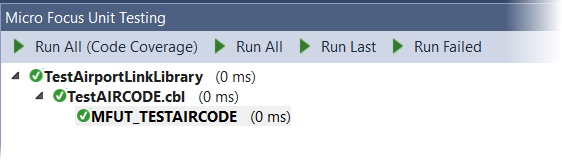 The icon displayed next to MFUT_TESTAIRCODE indicates that the test case has passed.