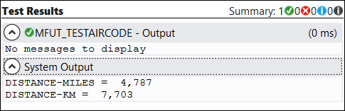 The icon displayed next to MFUT_TESTAIRCODE indicates that the test case has passed.
