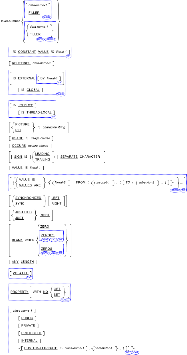 - The clauses SYNCHRONIZED, PICTURE, JUSTIFIED, and BLANK WHEN ZERO must not be specified except for an elementary data item.