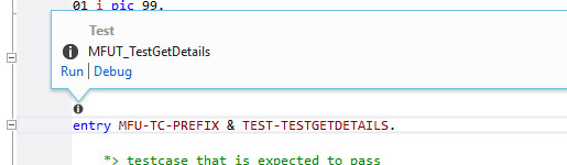 For Micro Focus Unit Testing entry points, CodeLens displays the information button,