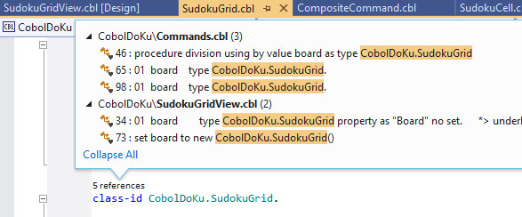 The CodeLens feature enables you to preview the exact references to paragraphs, sections, and classes. Hovering each line within the tooltip shows a preview of the code that uses the referenced name: