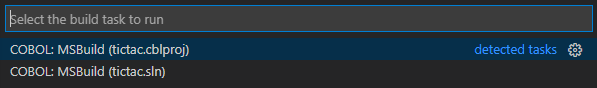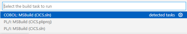 The Rocket Enterprise extension provides auto-generated build tasks for any .cblproj, .pliproj or .sln files. The projects can be for native COBOL, PLI/I code, or for .NET COBOL code.