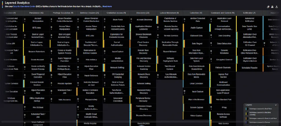 Extensive coverage of MITRE ATT&CK techniques and tactics with layered analytics and threat monitoring content packages.