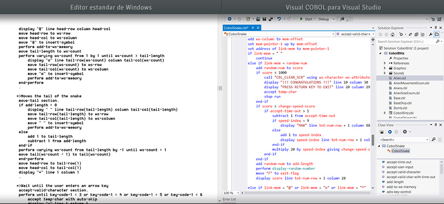 A la hora de hacer búsquedas, no hay discusión posible. Puede navegar entre cientos de líneas... o ir directamente a lo que le interesa con Visual COBOL.