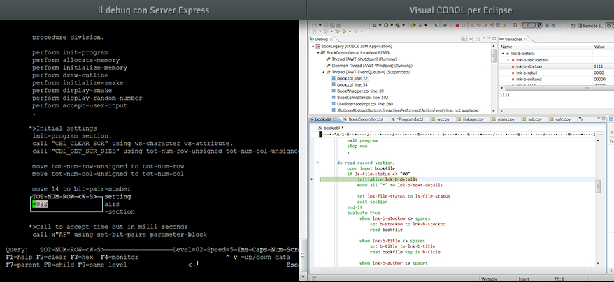 Individuate rapidamente la causa dei bug presenti nel codice. Eseguite il debug utilizzando Visual COBOL per Visual Studio per accedere ai più recenti strumenti di debug.